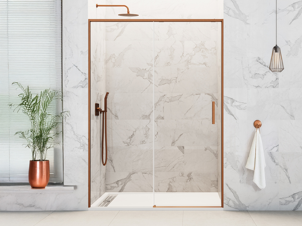 Mampara de ducha frontal con puerta corredera, perfilería minimalista de aluminio con cristales templados de 6mm y tratamiento antical. Doble rodamiento en nylon silencioso con diseño actual sin perfilería inferior. Medidas a elegir. Entrega inmediata.