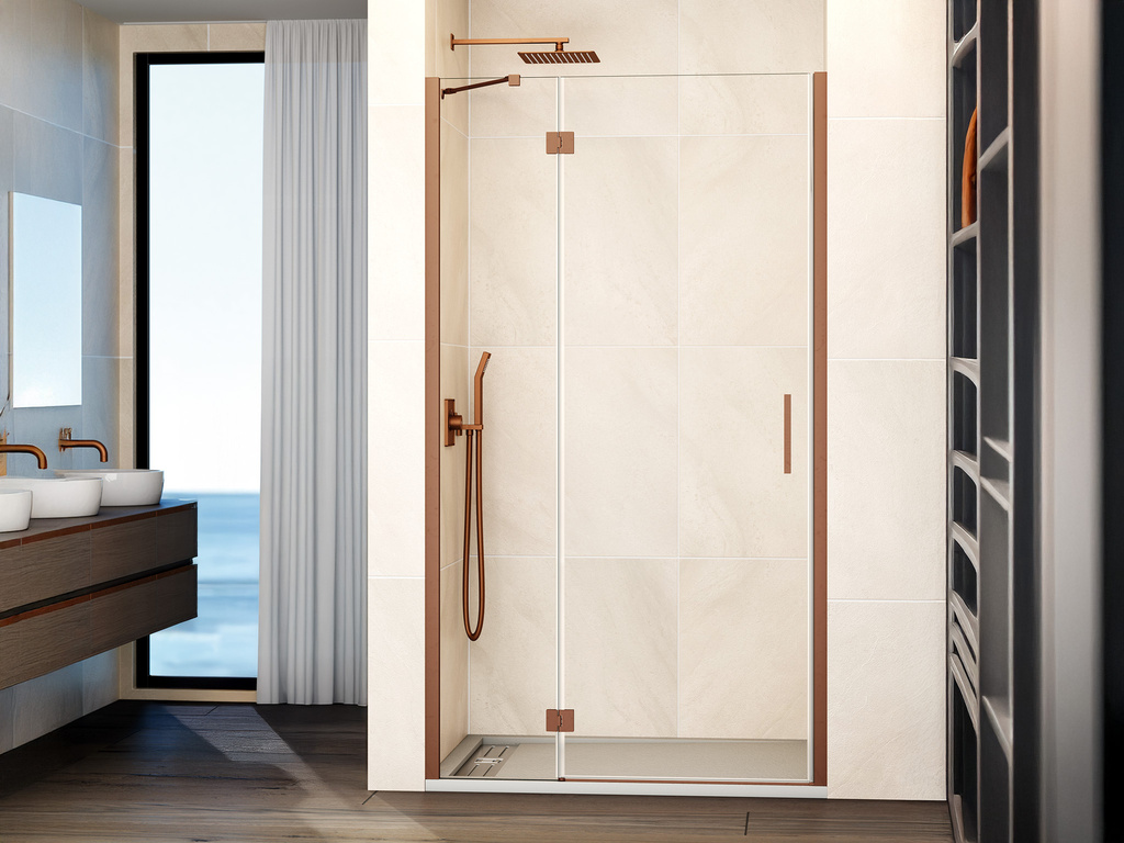 Mampara de ducha frontal con apertura totalmente plegable al interior del plato, con cierre imán a pared. Fabricada con cristal templado de 6mm y bisagra en latón cromado. Ideal para conseguir máxima entrada en espacios reducidos. Diseño minimalista sin perfileria inferior. Entrega inmediata.