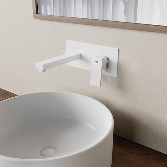 With the introduction of new models and shades in our single lever shower mixers, we have extended the range of colours in arms and shower heads in white, PVD nickel and PVD gold for the round format and white for the square format.