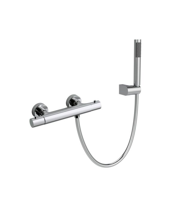 Ducha termostática fabricada en latón. Disponible ne dos acabados cromo y negro. Con sistema antiquemadura, sensor Vernet.
