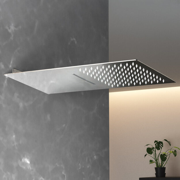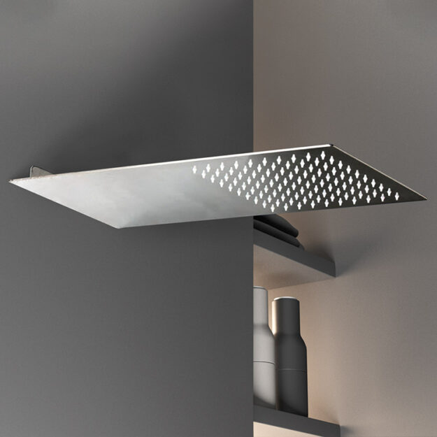 Tête de douche carré en acier inoxydable poli brillant ou noir mat.