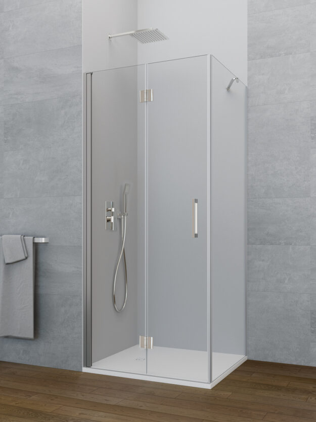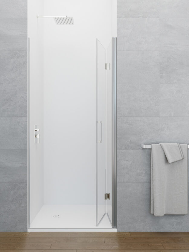 Puertas para mampara de ducha de 6mm abatible en diferentes medidas, con perfilería y accesorios de aluminio, para crear cualquier combinación con paneles fijos para la ducha.
