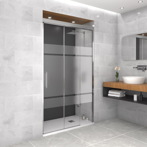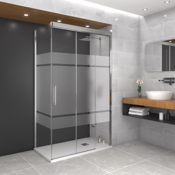 Le modèle Trio se caractérise par son système de 3 parois, une fixe + 2 coulissantes, idéal pour les espaces confinés de par l’amplitude de son entrée.