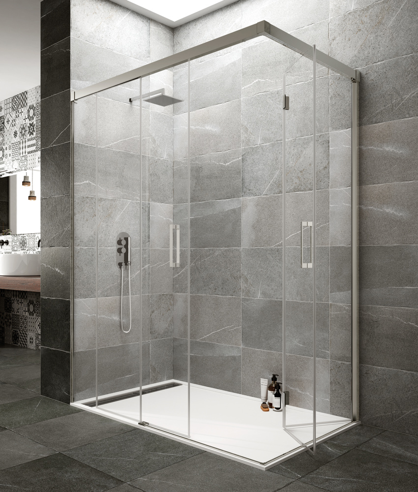 La paroi de douche Tandem est une solution pratique et polyvalente qui combine un panneau fixe avec une porte coulissante et un côté pliant, parfaite pour toutes les configurations de salle de bains, même les plus complexes ou restreintes. Son design intelligent et ses finitions de haute qualité en font un choix idéal aussi bien pour les particuliers que pour les professionnels.