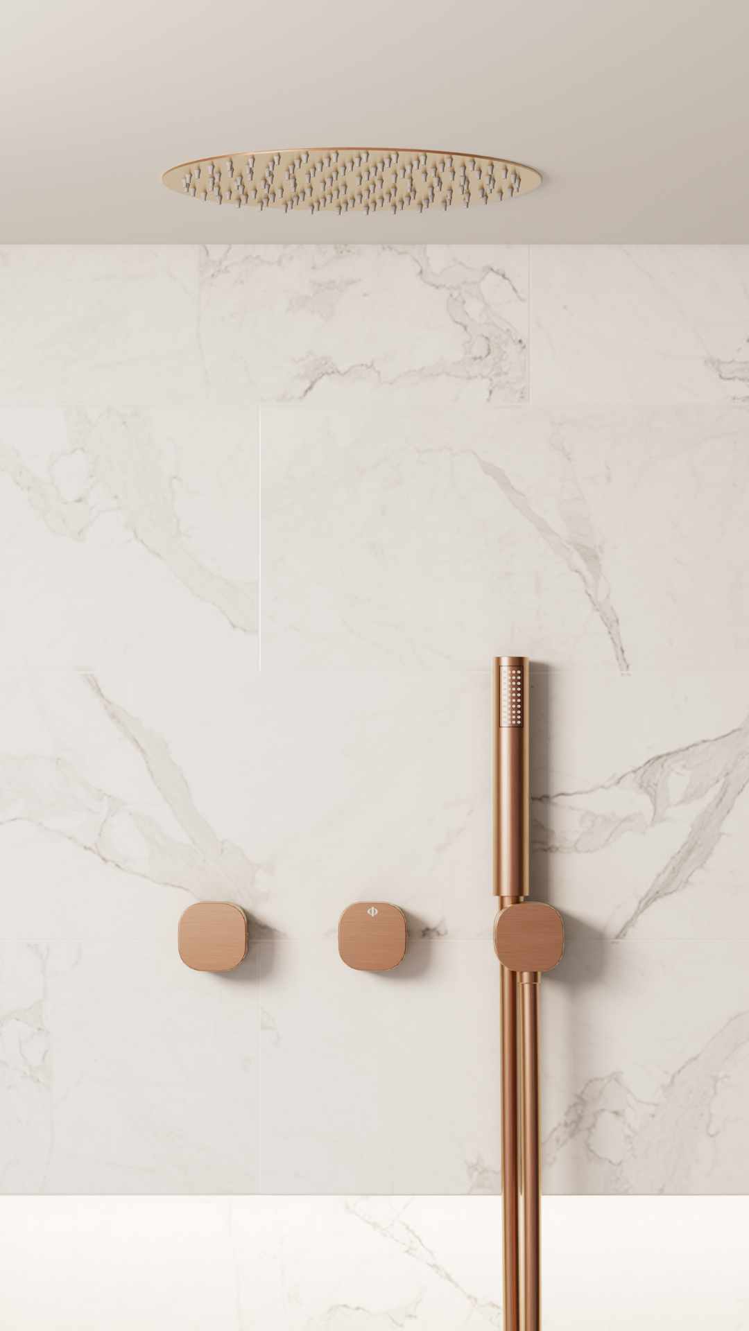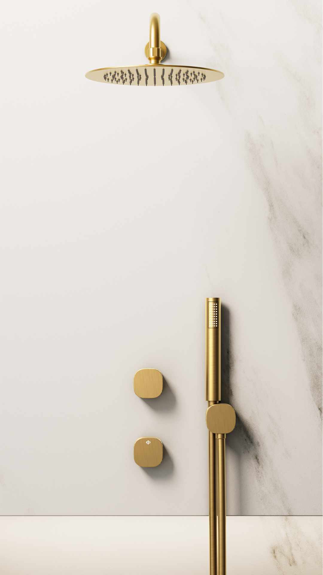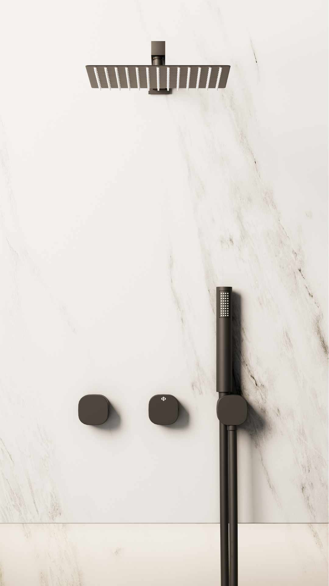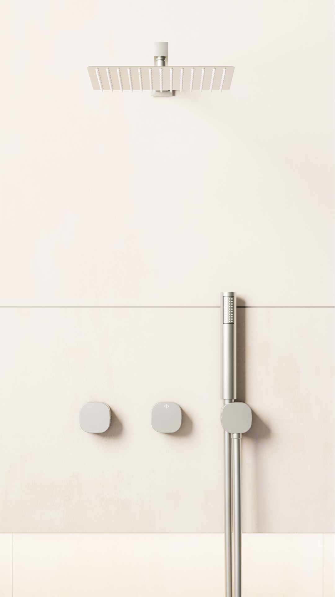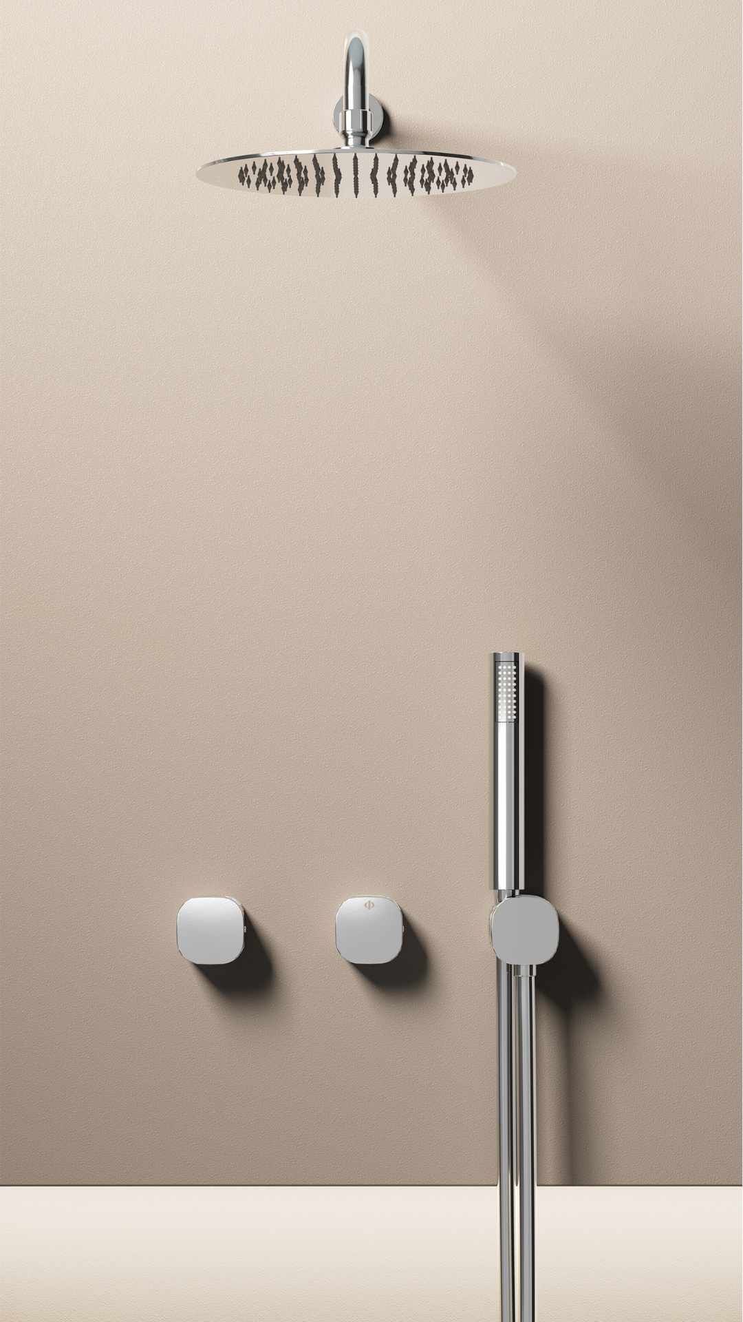 VERSATIL se caracteriza por un diseño extremadamente depurado, donde cada elemento ha sido simplificado hasta su mínima expresión. El resultado es una estética discreta y sofisticada que se integra con naturalidad en baños contemporáneos, arquitectónicos o de inspiración wellness. El conjunto presenta manetas de 60 x 60 mm, que refuerzan esa sensación de ligereza visual y precisión estética. El mango de ducha, con diseño cilíndrico y elegante, mantiene esa misma línea minimalista, aportando ergonomía y comodidad en el uso diario.