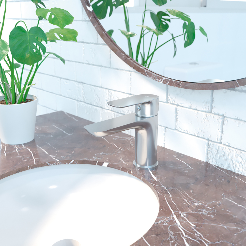 Grifo monomando fabricado en latón cromado con un diseño que combina elegante líneas rectas y redondeadas con un toque funcional. Disponible en 5 acabados: cromo, negro mate, blanco, titanio y blanco/cromo, para que puedas elegir el estilo que mejor se adapte a tu baño. La serie de grifería cuenta con apertura en frío, lo que significa que el agua siempre saldrá a temperatura ambiente hasta que se gire la maneta hacia la zona de calor, evitando el gasto innecesario de agua caliente y garantizando ahorro energético. Confiamos en la calidad de nuestros productos, por eso ofrecemos una garantía de fabricación de 5 años, que te brinda la tranquilidad de que tu grifería está respaldada por una durabilidad excepcional.