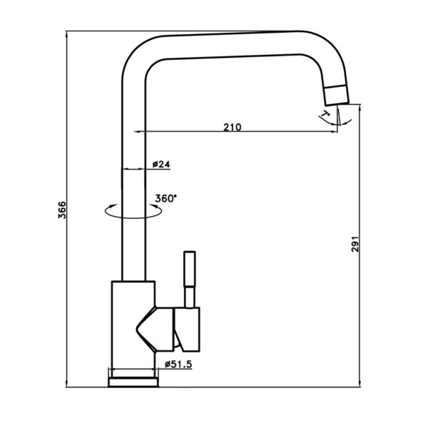 El grifo monomando de cocina Noah negro mate cuenta con las siguientes características técnicas: