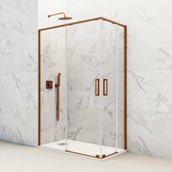 La serie Twenty color está fabricada con una perfilería en aluminio de tan solo 20 mm y ausencia de perfilería inferior, lo cual, le otorga una gran belleza minimalista a su diseño. En esta serie incorporamos un novedoso sistema de cierre automático SOFT CLOSE de fácil acceso. Este modelo está disponible en formato frontal y angular con lateral fijo, se puede escoger entre perfileríacromo brillo, negro mate y oro cepillado. Sus cristales de 6 mm llevan tratamiento antical para facilitar su limpieza y mantenimiento.