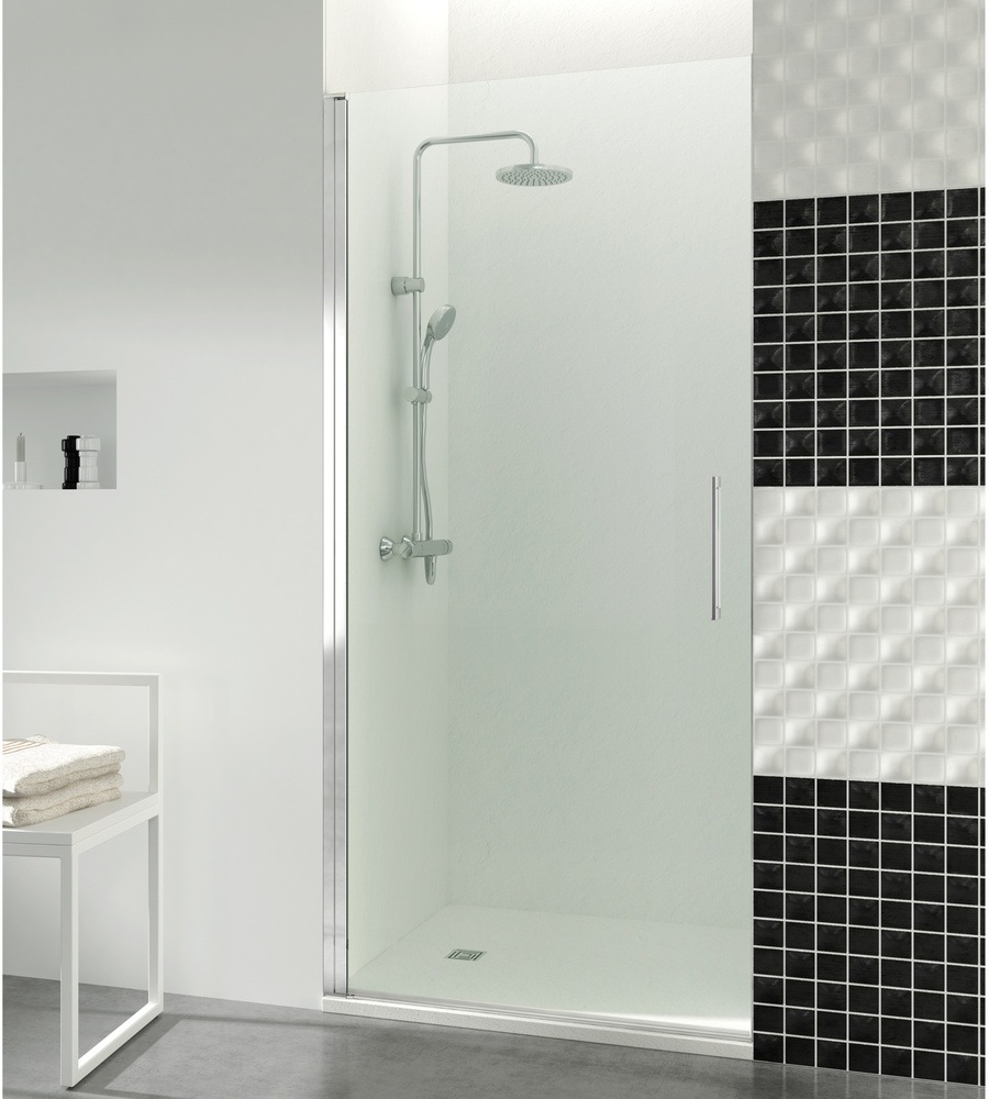 El sistema de apertura es mediante hojas abatibles que permiten un giro de 90º hacia el exterior o hacia el interior del plato de ducha. En caso de que quiera que la puerta abra tanto hacia dentro como hacia fuera, puede pedir el kit IN-OUT 180º.